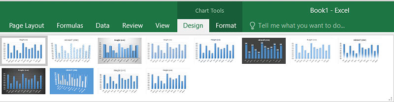 With the chart selected, look at the Ribbon: you will see a new tab, Chart Tools, appear. In the Design part, you can quickly choose from some basic chart themes: