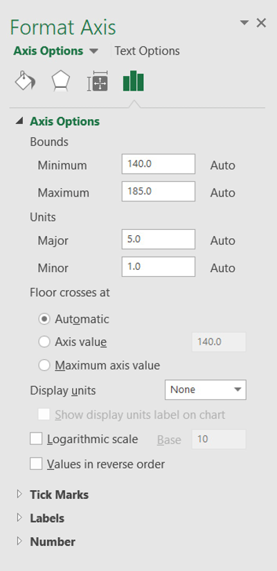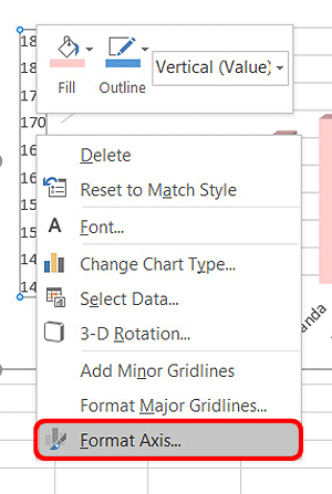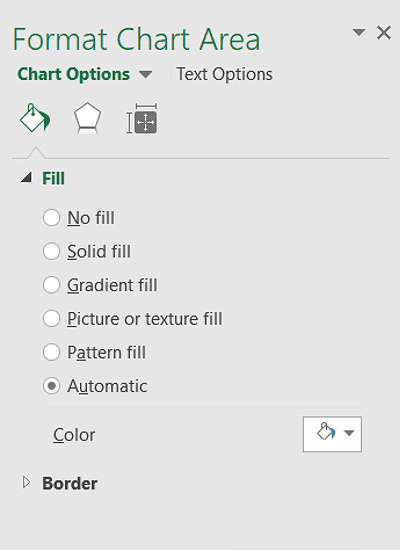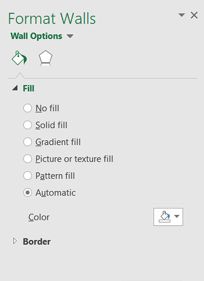 Once you open up that pane, you can format any part of the chart that you select, including any axis, the chart background, or the "walls," which is the area behind the bars or other chart indicators: