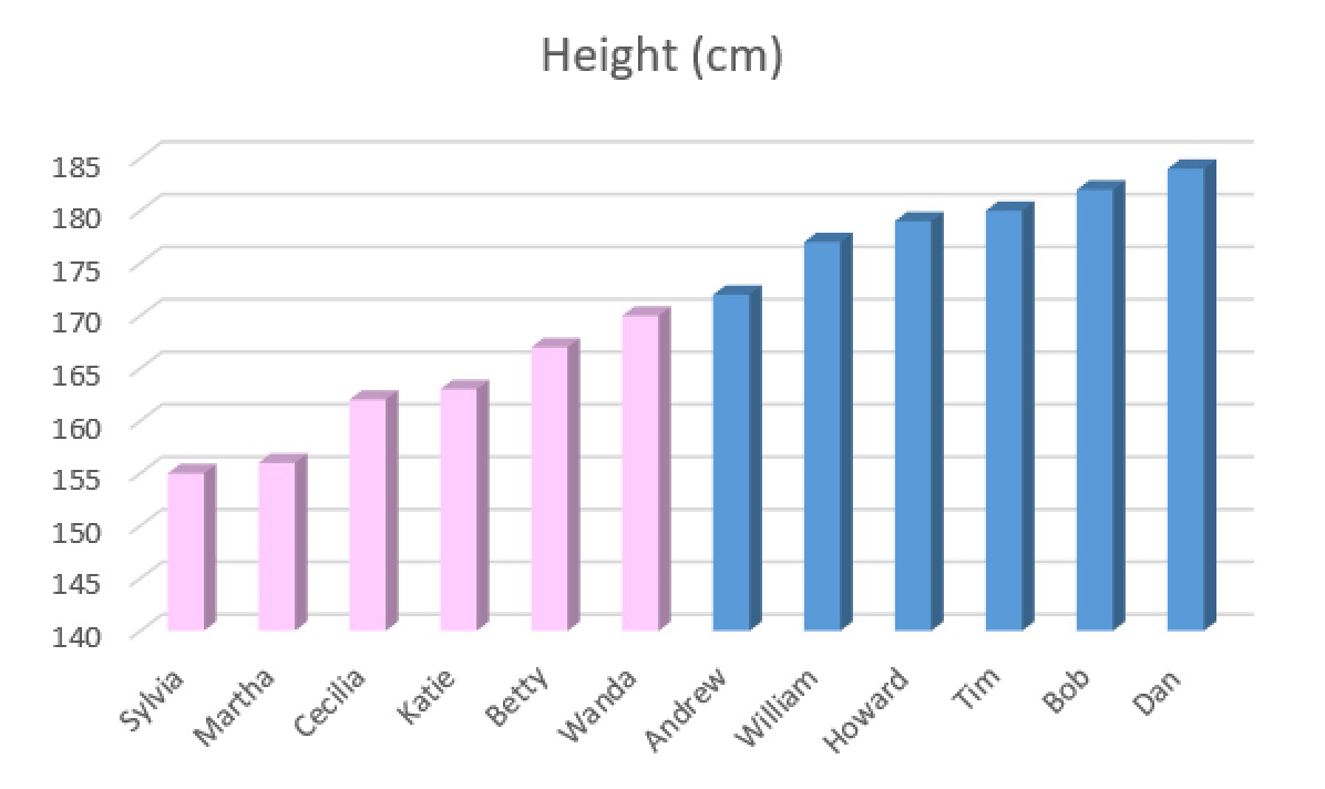 Here, you can see the "message" of the chart clearly: men are usually taller than women.
