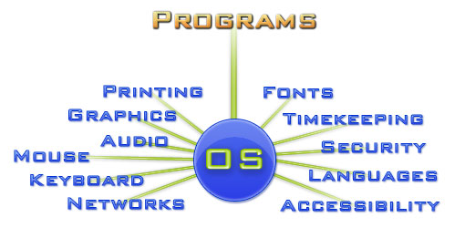 A way to think of the overall operating system for a computer is that it serves as a government, or as a society for that computer. Just like people and businesses depend upon social services, both you and the programs you use depend upon the operating system to provide basic services that are needed.