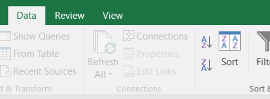 Once you have selected the data, go to the DATA tab and select "Sort...".