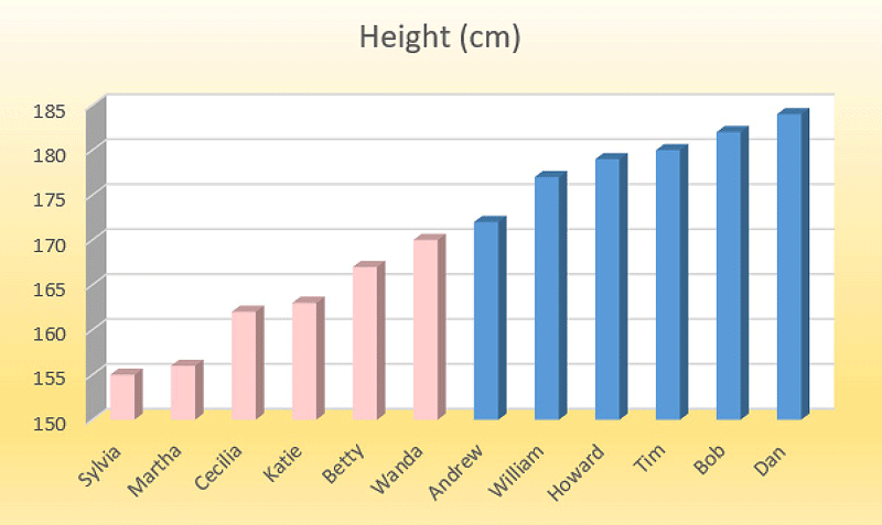 Here, you can see the "message" of the chart clearly: men are usually taller than women.