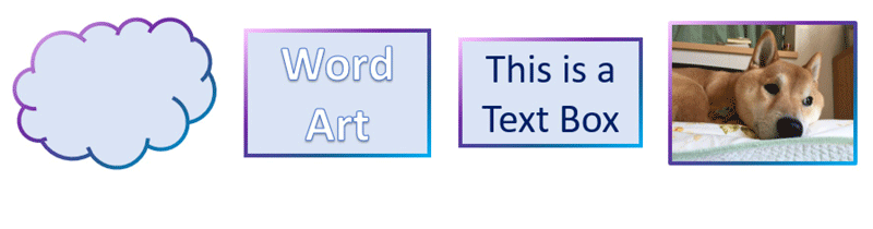 Once you have inserted a shape, text box, word art, or image, you can then change its appearance as a shape. (Note that the slide background can also be edited in a similar fashion.)